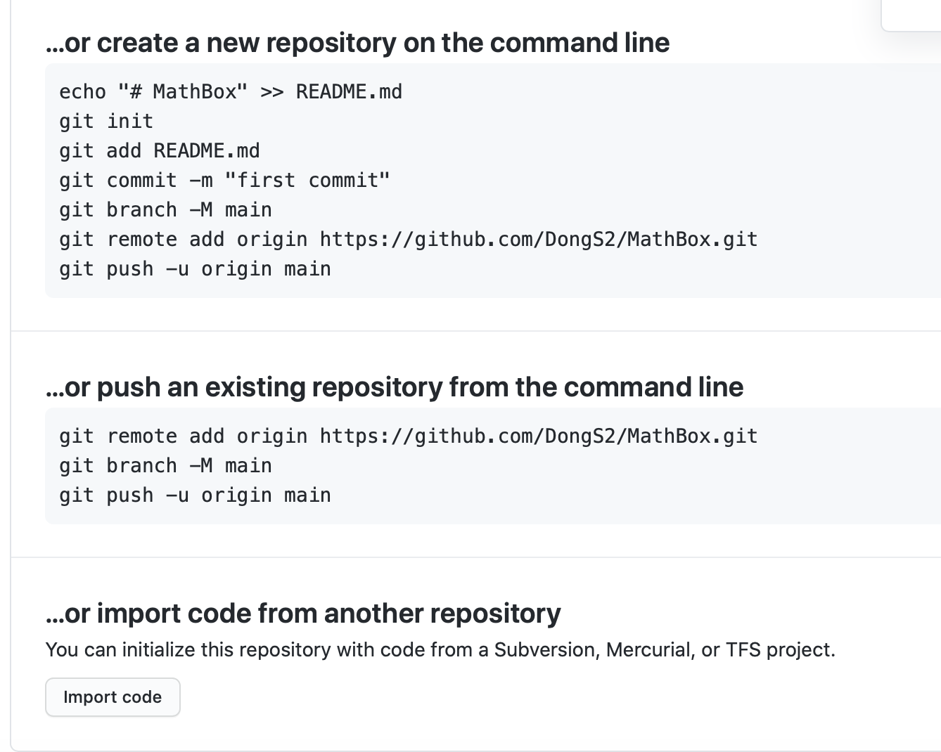 GitHub에서 레포지토리를 만들면 업로드 방법에 대한 설명이 나와있다.
