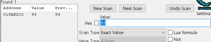 숫자 값이니 4byte일 것이라고 추측하고, Scan Type을 Exact Value로 한 뒤, value를 넣고 Scan을 하면 된다.