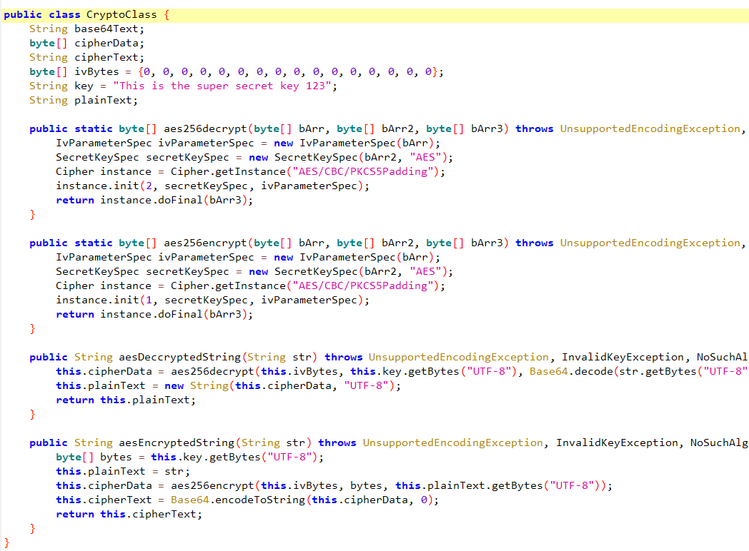 암호화할 때 사용하는 CryptoClass를 확인해보자.