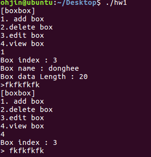 >을 출력하고 boxbox[index]+4에 boxbox[index]+10의 크기만큼 stdin을 파일디스크립터로 하여 읽는다.