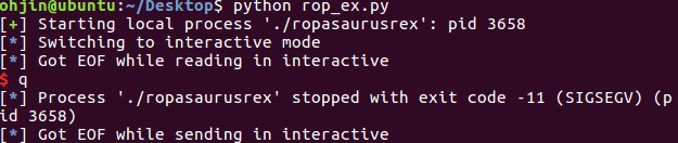 objudmp -d ropasaurusrex | grep -B4 "ret" 명령어로 확인할 수 있다.