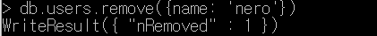 remove명렁어로 해당하는 다큐먼트를 제거할 수 있다.