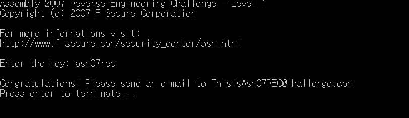 [2007 F-Secure Reverse Engineering] level1 writeup 본문