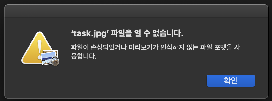 문제 파일을 다운 받았더니 열 수 없다고 한다.