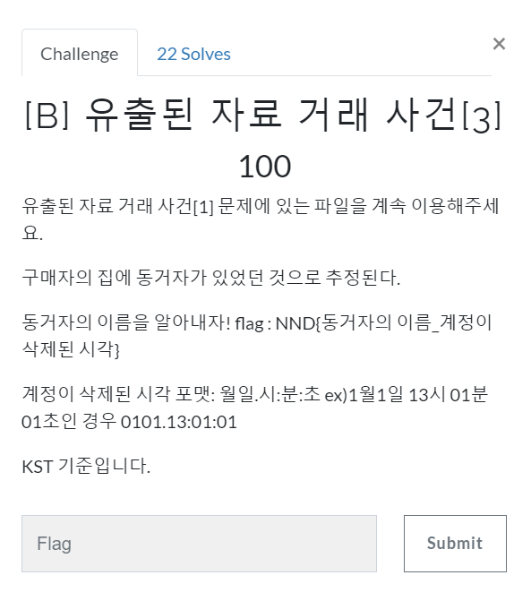 동거자의 이름과 계정이 삭제된 시간을 알아보면 된다.