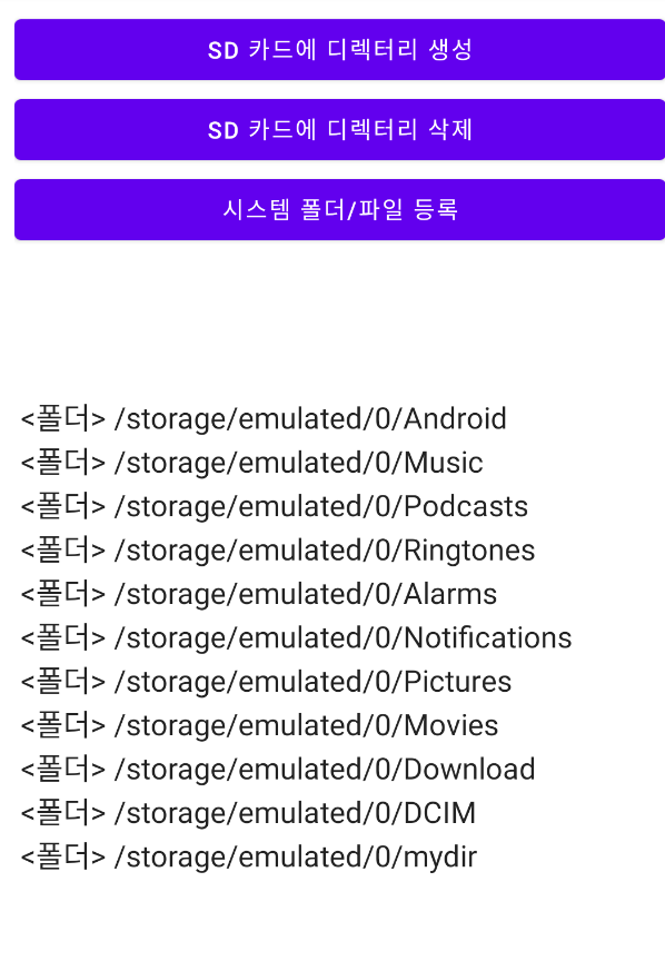 android:text="SD 카드에 디렉터리 생성"/>